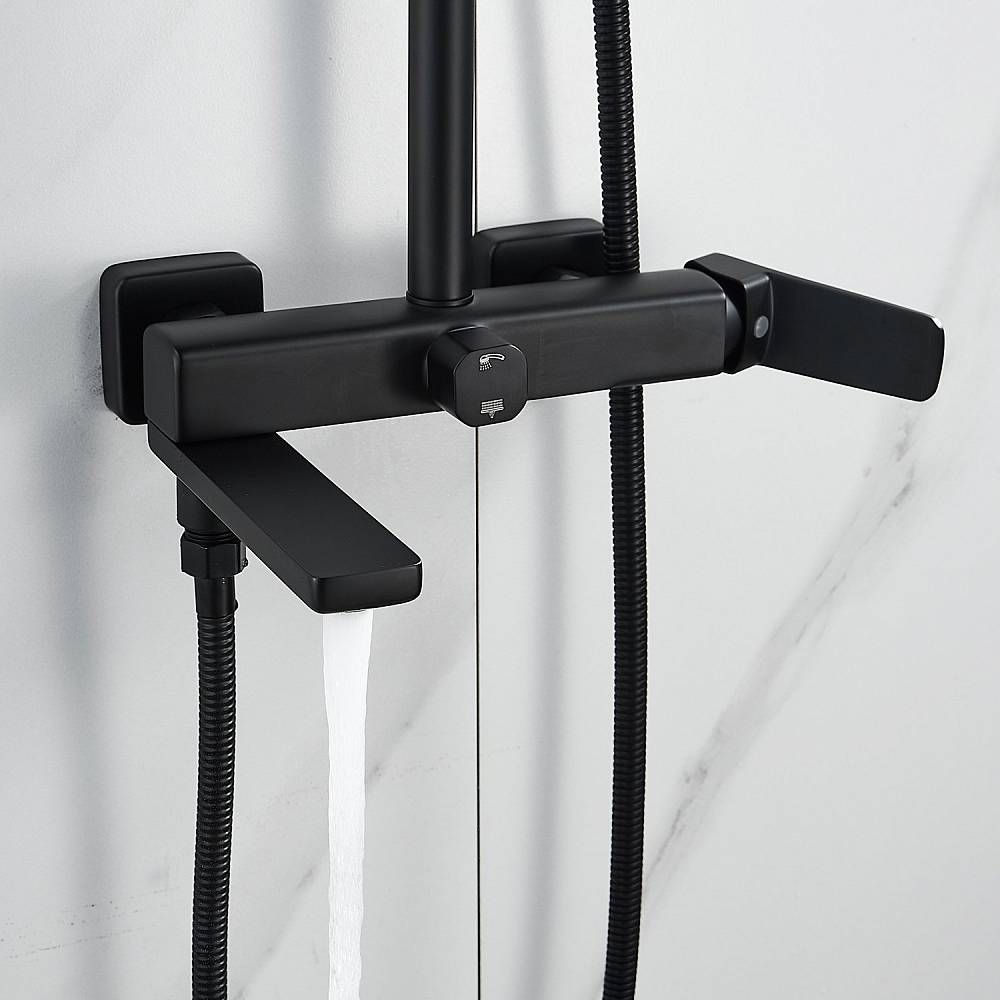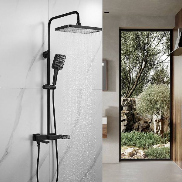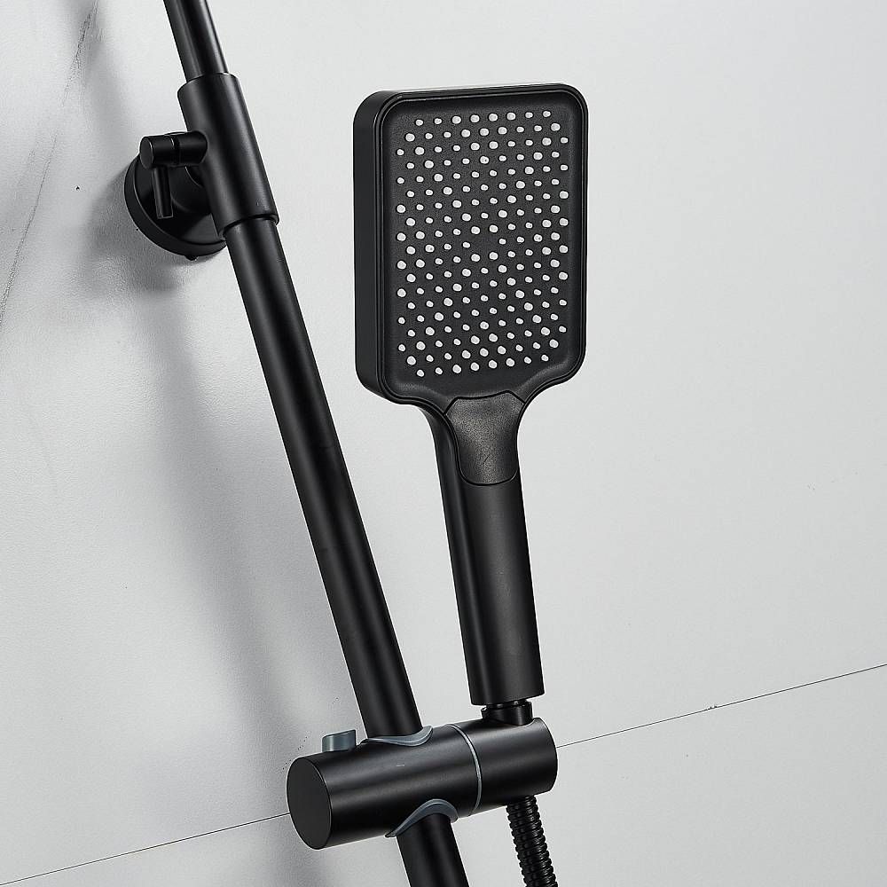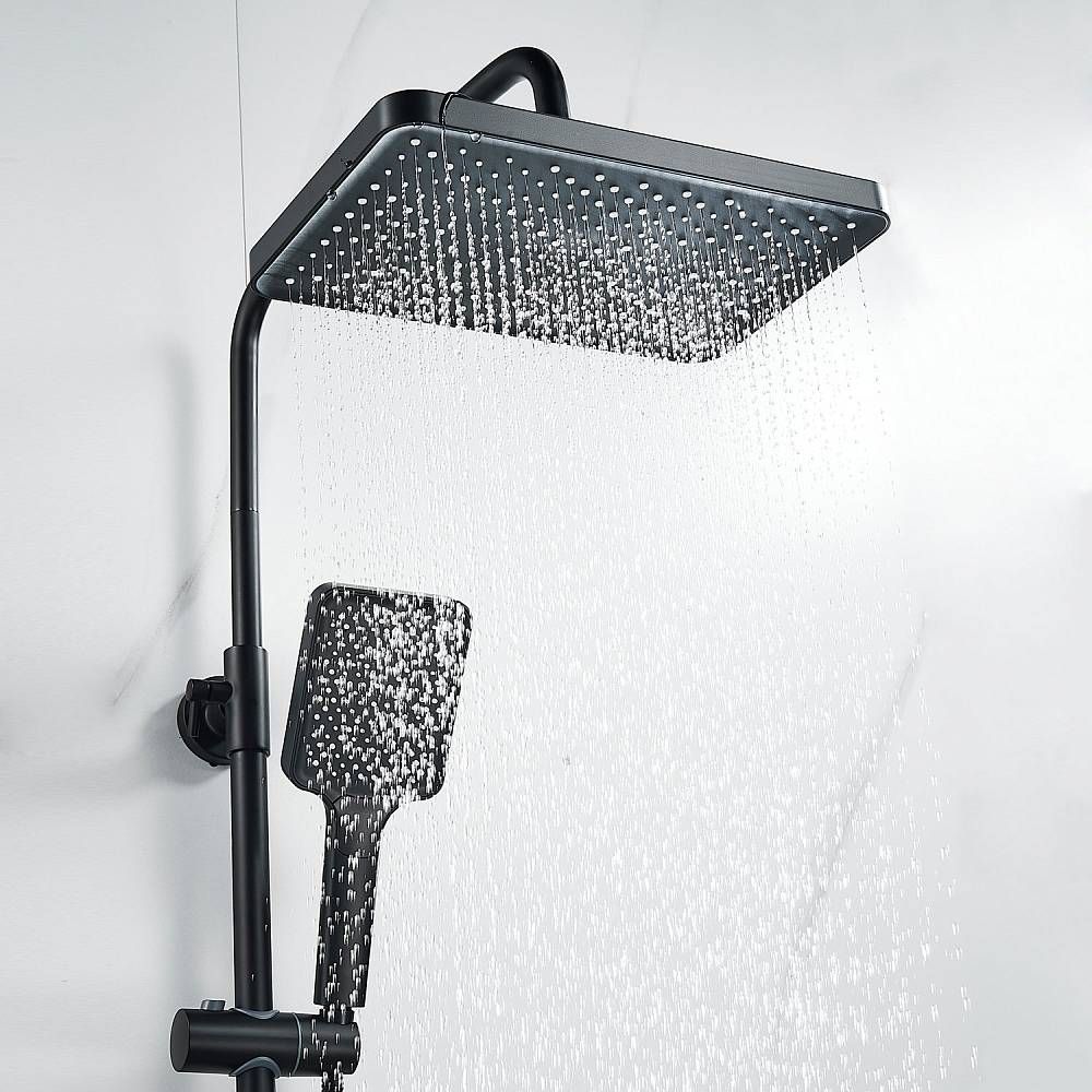 Душевая система Shevanik S9936H, черный.Количество режимов струи: 3.Размер верхнего душа: 32x21 см.Управление: рычажное.Излив для наполнения ванны: да.