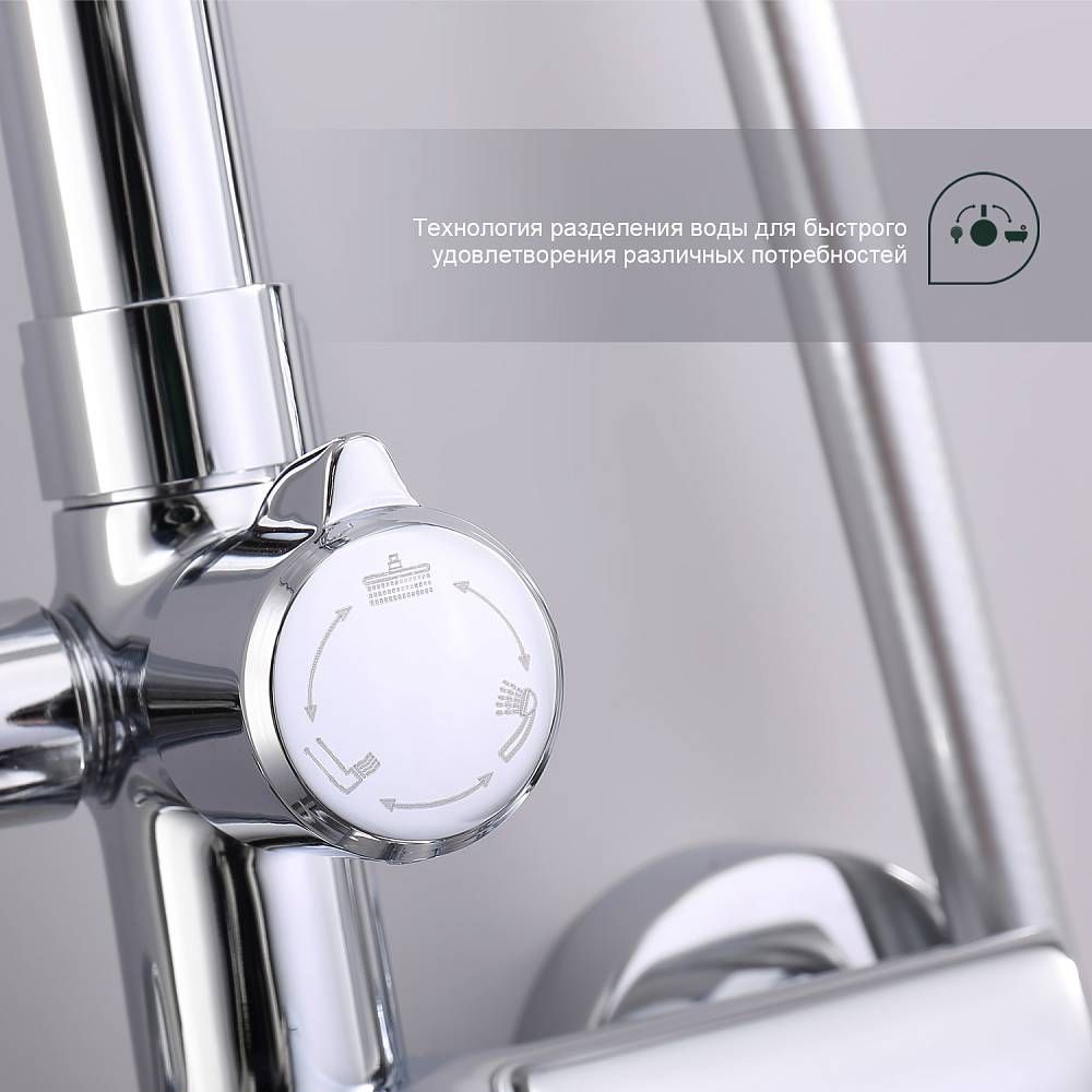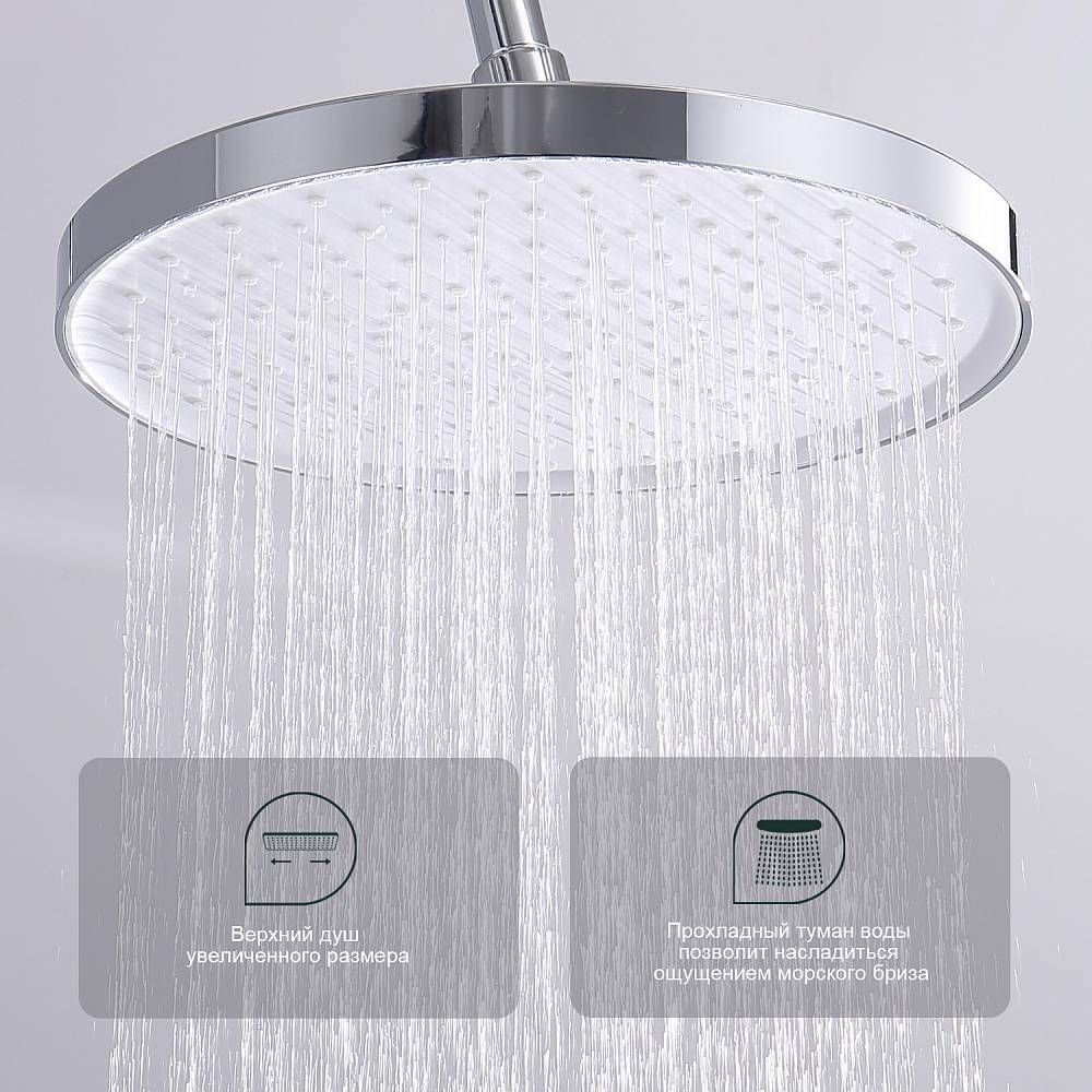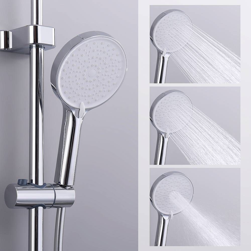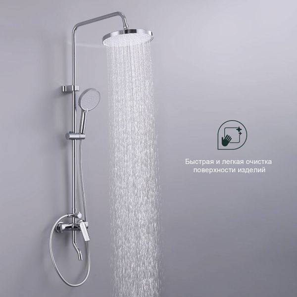 Душевая система Splenka S50.24, хром. Душевая система подходит для ванны и душа. Верхний душ имеет круглую форму размером 25 см. Ручная лейка у системы 3-х режимная. Лейки изготовлены из авс-пластика.