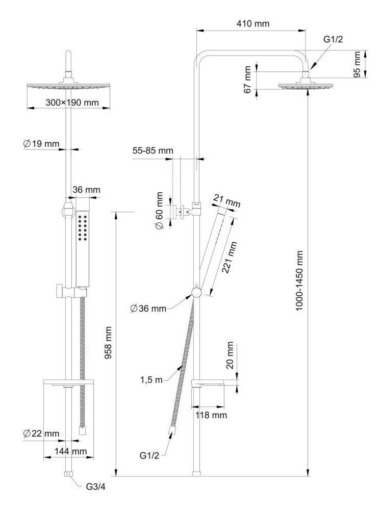 Размер ручного душа, см:22