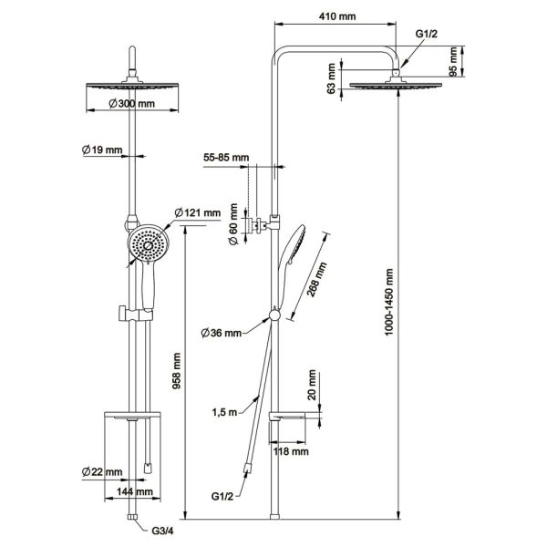 Размер ручного душа, см:12