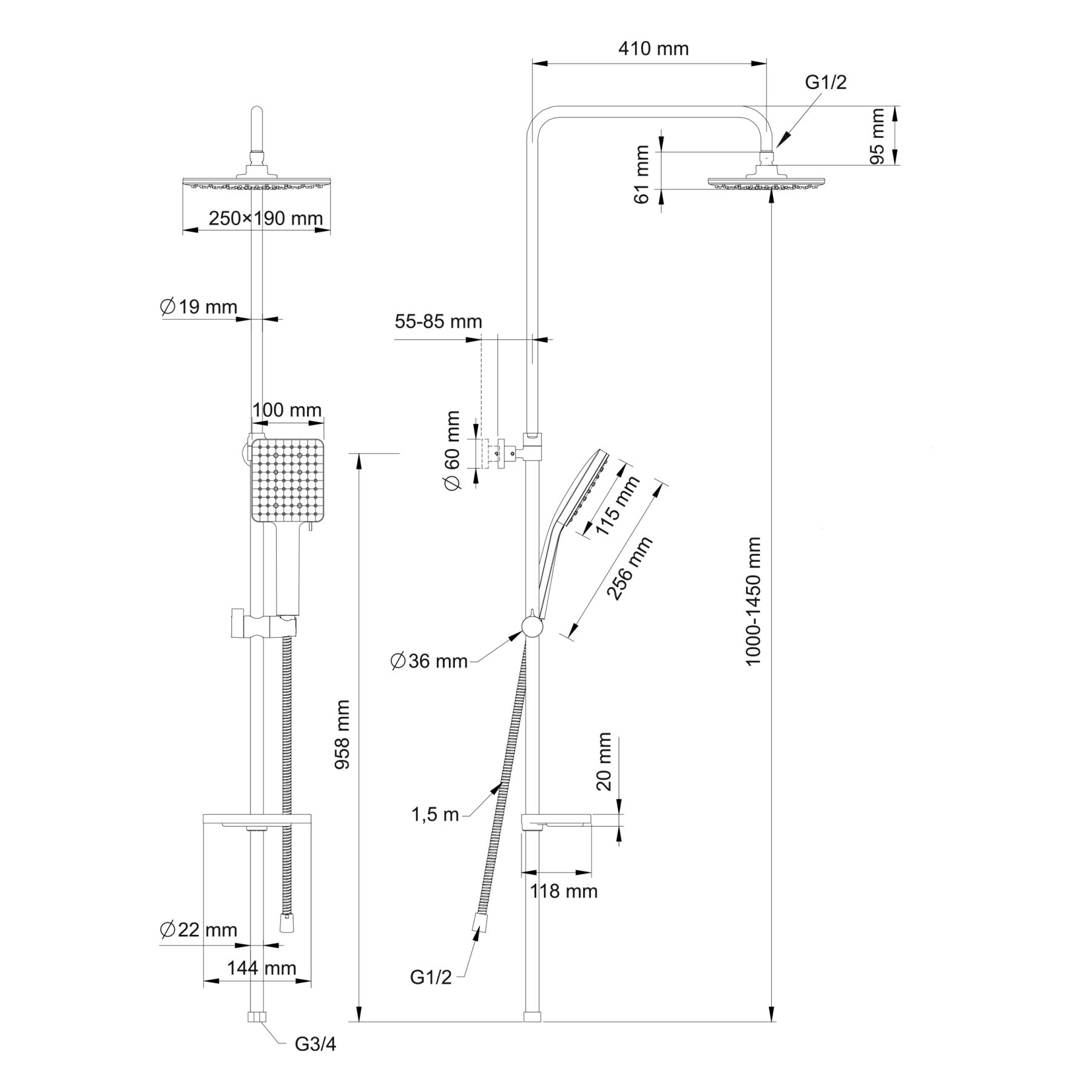 Размер ручного душа, см:10