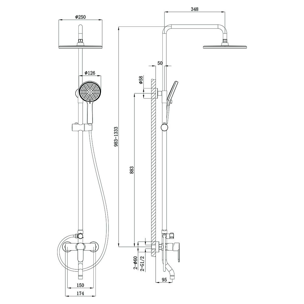 Душевая стойка TURI, графит брашинг купить