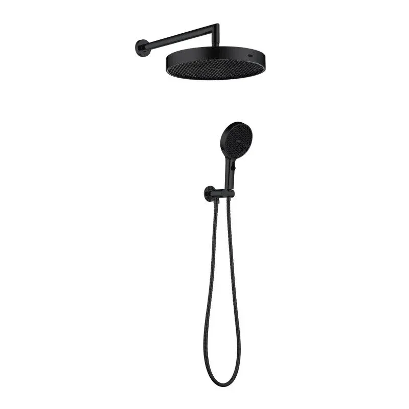 Многорежимная ручная лейка (базовый, массажный и турборежим) и двухфункциональный верхний душ диаметром 30см(тропический душ и массажный каскад). Форсунки душевой лейки и верхнего душа из ультромягкого силикона. Материал леек-пластик. Режимы верхнего душа переключаются при повторном переключении дайвертера смесителя. Декор леек в виде сот, большая цветовая палитра и приемлемая стоимость за комплект со шлангом и двумя лейками.
