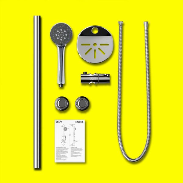 Многофункциональный душевой комплект Norma очень практичен и удобен в использовании. Хромированный шланг комплекта защищен от перекручивания, есть функция регулировки по высоте, удобная мыльница, а ручной душ имеет 5 функций. Стильный дизайн и минималистичное цветовое решение позволит удачно вписать душ в любой дизайн интерьера.