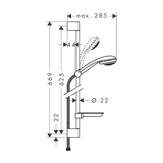 Душевой гарнитур Hansgrohe Crometta 85 Vario/UnicaC 27764000в комплекте ручной душ, душевая штанга, шланг для душа, ползунок