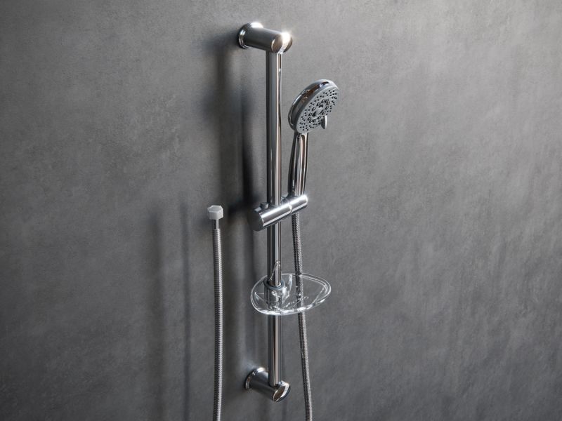 Комплектация - ручной душ, держатель лейки поворотный, мыльница, душевой шланг, набор для монтажа.
