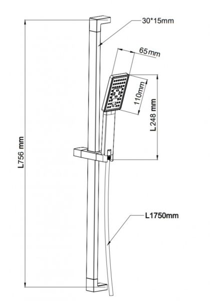 - штанга для душа стальная, длина: 77,5 см, расстояние между монтажными элементами: 75,6 см