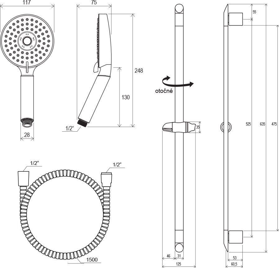 Классический набор для душа с держателем 60 см и трехрежимной лейкой. Для очистки внешней поверхности используйте средство RAVAK Cleaner Chrome.