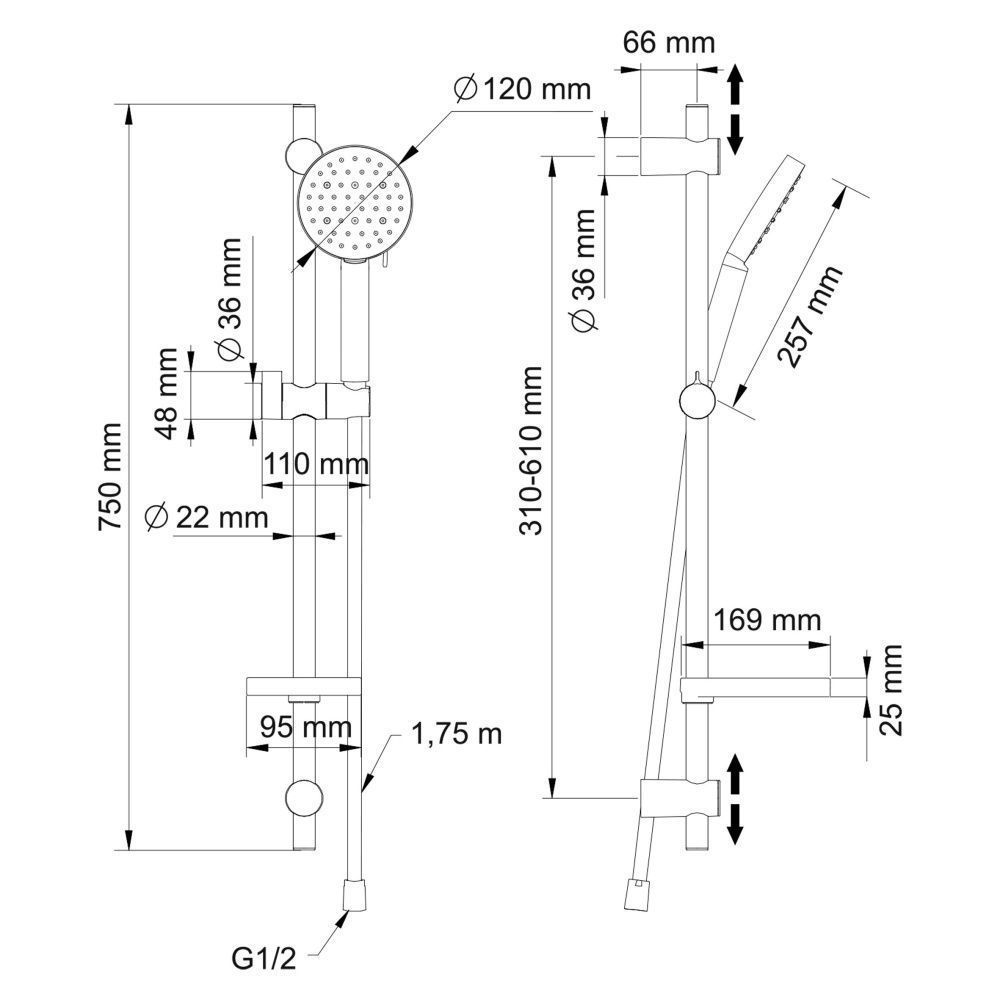Размер ручного душа, см:12