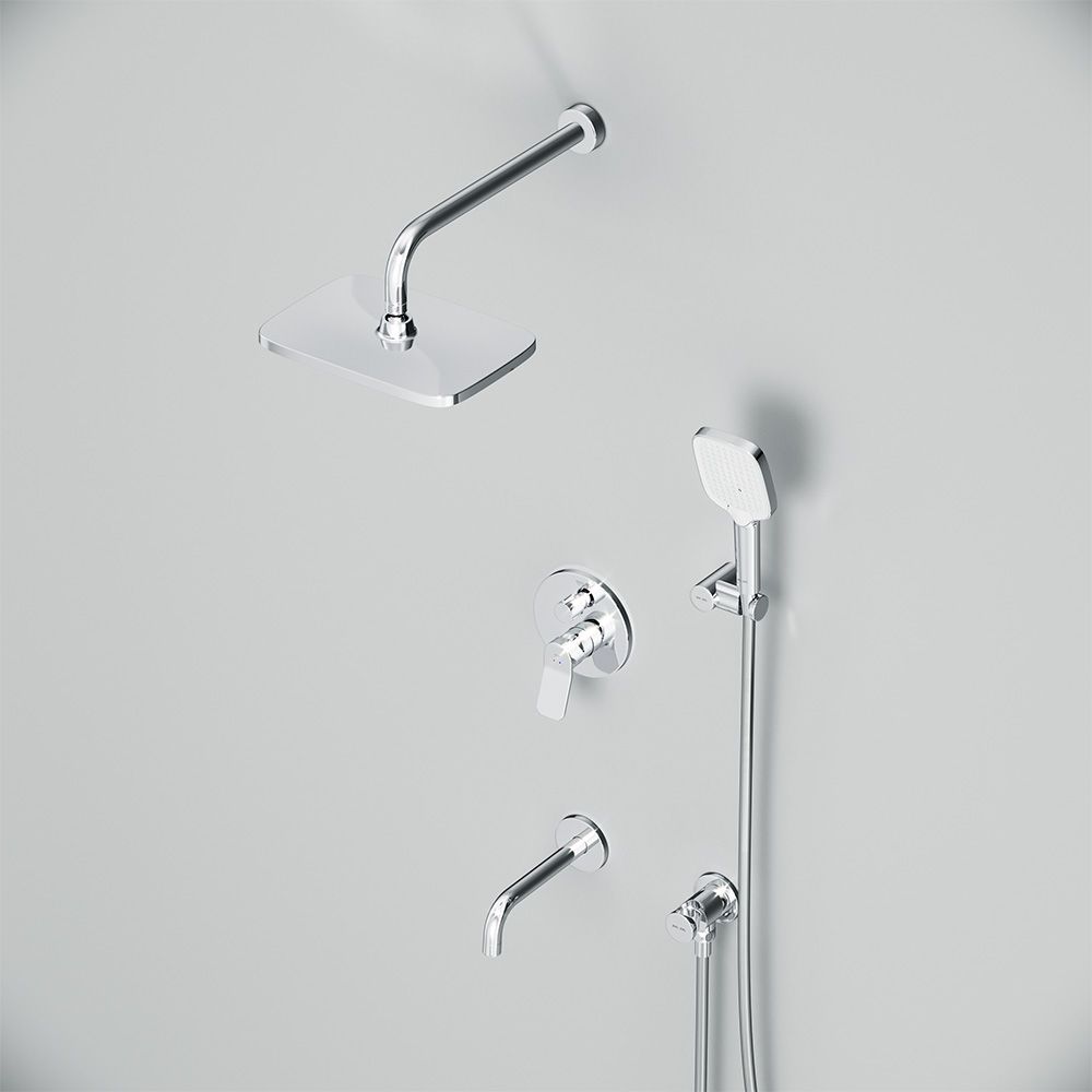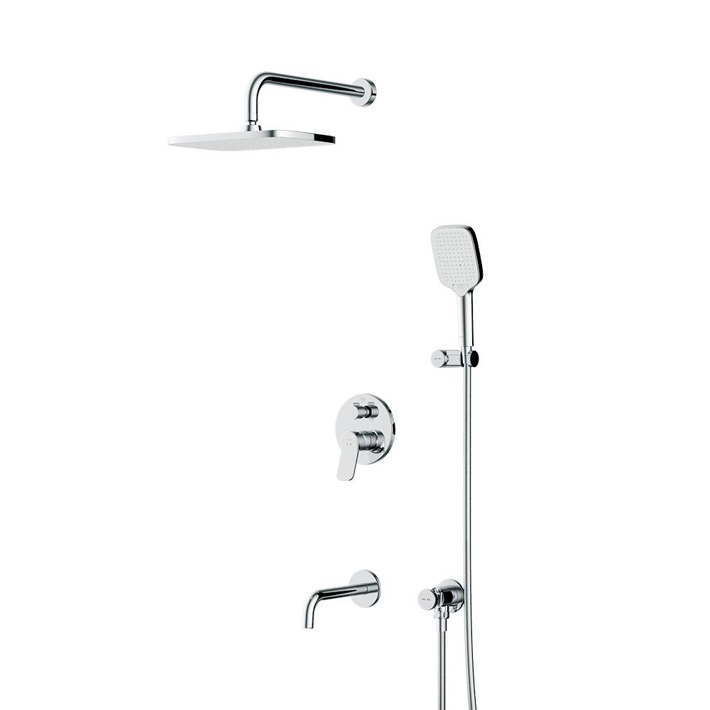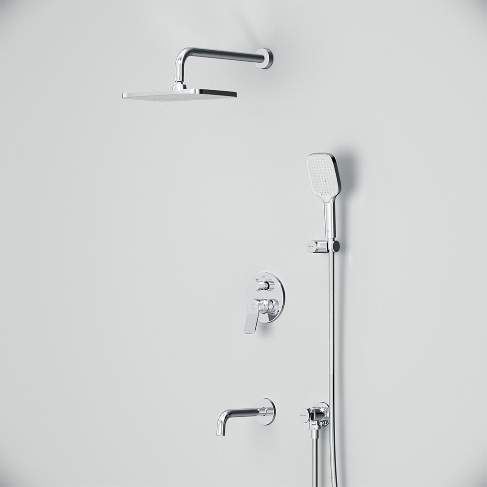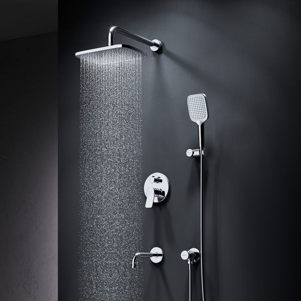 Набор встроенного оборудования X-Joy - идеальное решение для вашей ванной комнаты. Встроенный механизм освобождает ванную комнату от лишних деталей превращая пространство в идеальное место для себя. Набор включает в себя: верхний тропический душ 21x30 см, ручной душ, держатель ручного душа, излив и смеситель.