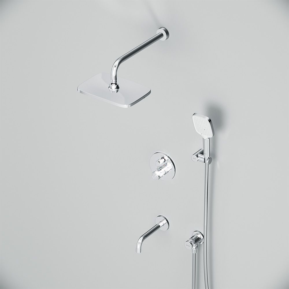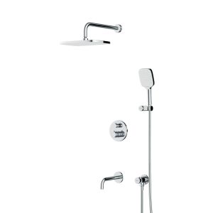 Набор встроенного оборудования X-Joy - идеальное решение для вашей ванной комнаты. Встроенный механизм освобождает ванную комнату от лишних деталей превращая пространство в идеальное место для себя. Набор включает в себя: верхний тропический душ 21x30 см, ручной душ, держатель ручного душа и смеситель.