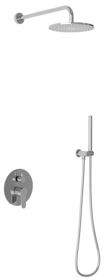Душевой комплект BERGES NARDIS 2R - встраиваемый душевой комплект обладает двухрежимной системой и состоит из верхней лейки - «тропического ливня», ручного душа и смесителя. Лейка верхнего душа имеет инновационную систему самоочистки в виде гибких силиконовых вставок на форсунках душа, которые защищают изделие от известковых отложений. Изготовлены оба душа из ABS пластика, имеют хромоникелевое покрытие, которое выглядит безупречно на протяжении всего периода эксплуатации. Шланг выполнен из нержавеющей стали (внутри epdm), смеситель с латунным корпусом имеет керамический картридж с пропускной способностью 28 л/мин, все держатели и кронштейны сделаны из латуни и нержавеющей стали.Скрытый монтаж комплекта позволяет создавать красивое и эргономичное внутреннее пространство всего помещения.