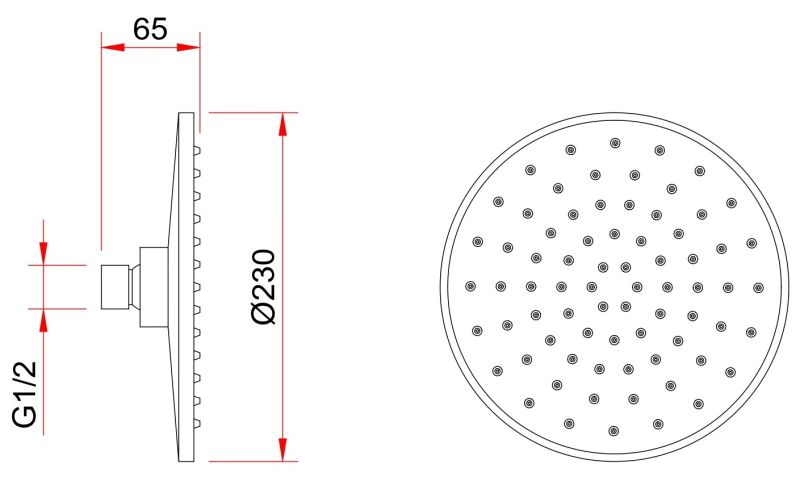 Размер верхнего душа, см:23