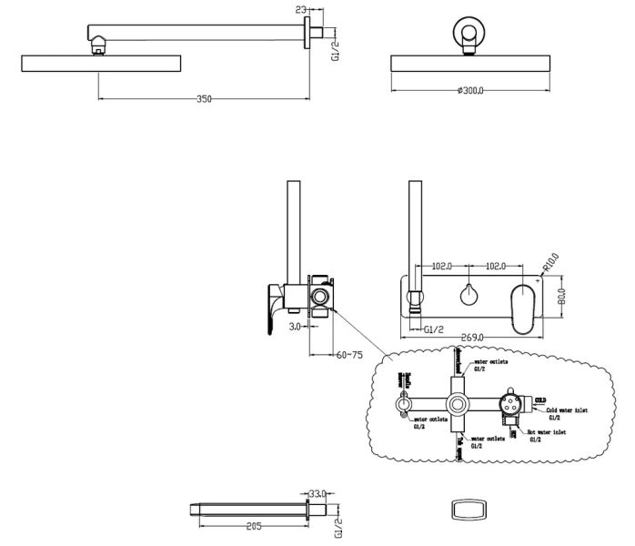 - Кронштейн для верхнего душа.