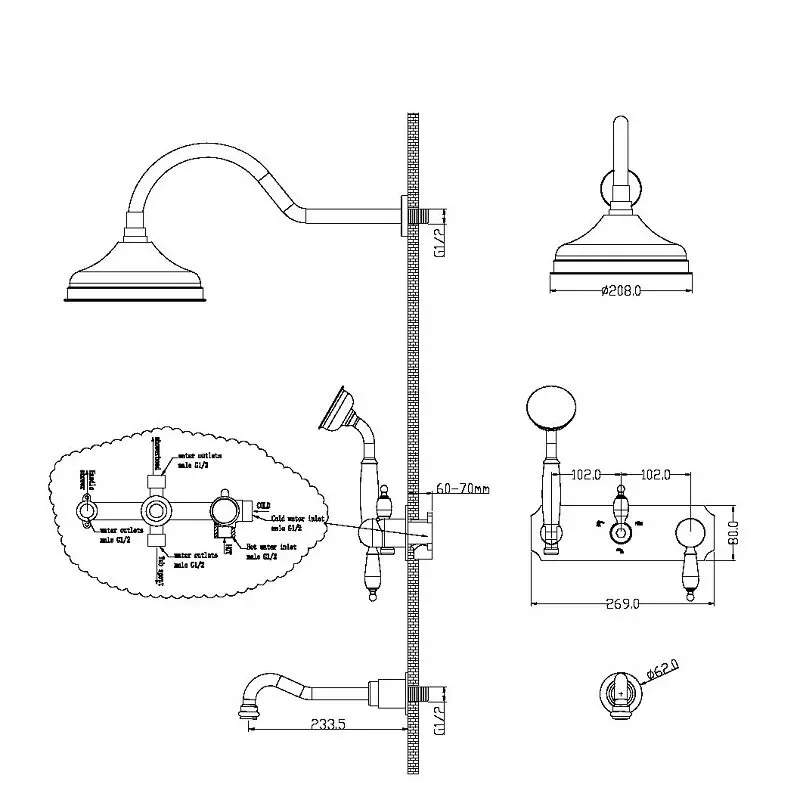 - Верхний душ: 20.8 см