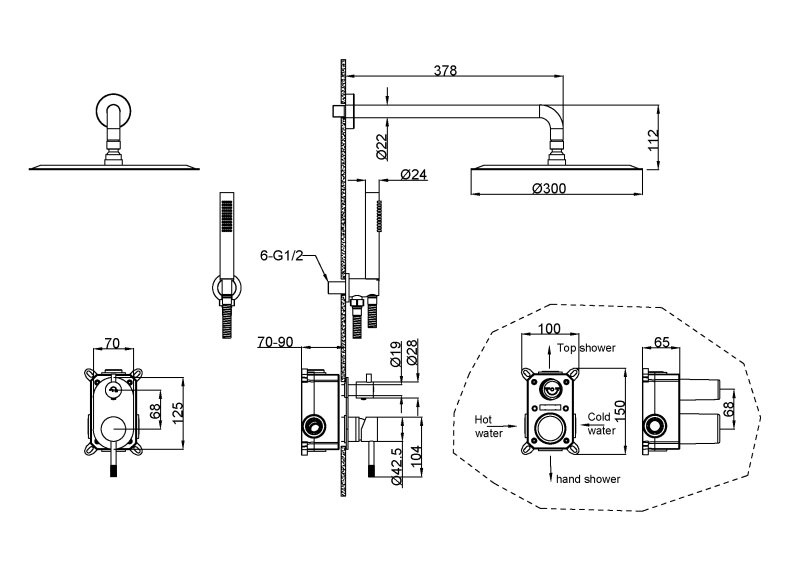 Душевая система Boheme Uno, верхний душ, ручной душ,