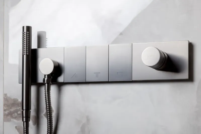 Ультра плоский дизайн, инновационное управление режимами позволит создать идеальный комфорт. Верхний душ размером 550мм*230мм с функцией тропического душа. Форсунки soft-silicone с функцией антикальк и комфортной очисткой. Магнитный держатель лейки Каскадный излив как дополнительная опция. Картридж Sedal, переключатели Neoperl.