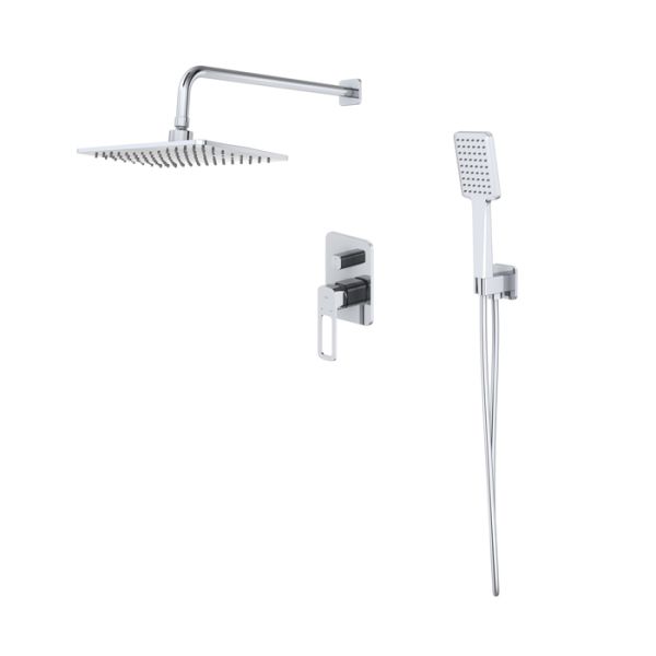 Готовый набор встраиваемой сантехники в хроме включает всё необходимое для обустройства комфортной красивой ванной. Так выгоднее и удобнее, чем купить всё по отдельности. Оптимальная подборка сантехники Slide: смеситель, верхняя лейка с кронштейном для тропического душа, ручная лейка, душевой шланг 1,5 м и выход для шланга с держателем для лейки.