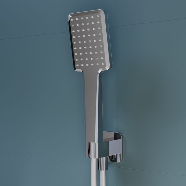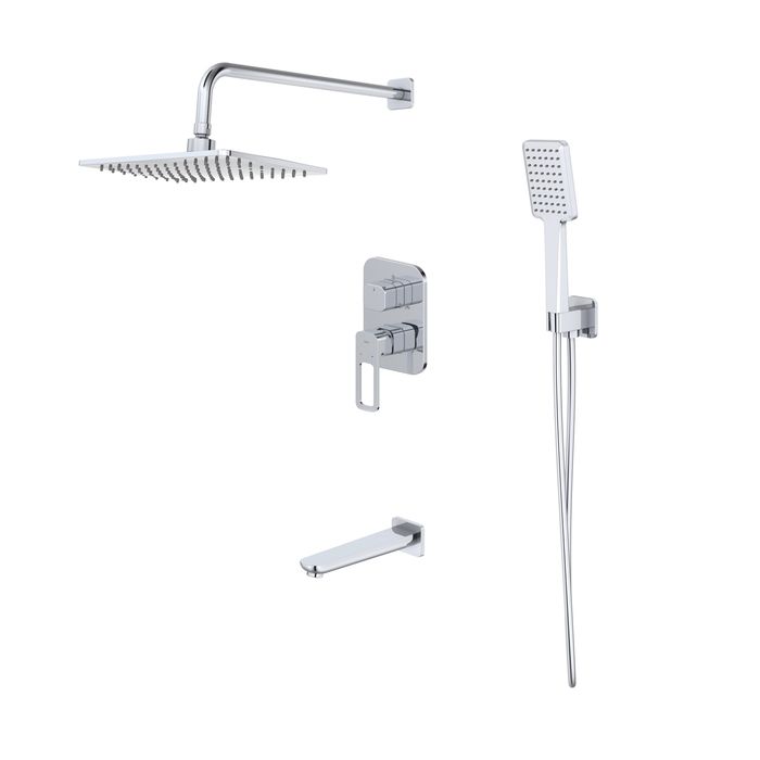Готовый набор встраиваемой сантехники в хроме включает всё необходимое для обустройства комфортной красивой ванной. Так выгоднее и удобнее, чем купить всё отдельно. Оптимальная подборка Slide: смеситель, верхняя лейка с кронштейном для тропического душа, излив, ручная лейка, душевой шланг и выход для шланга с держателем для лейки.