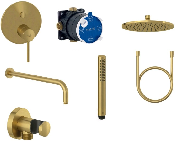 Душевой комплект Kludi Bozz 38658N076 со смесителем брашированное золото купить