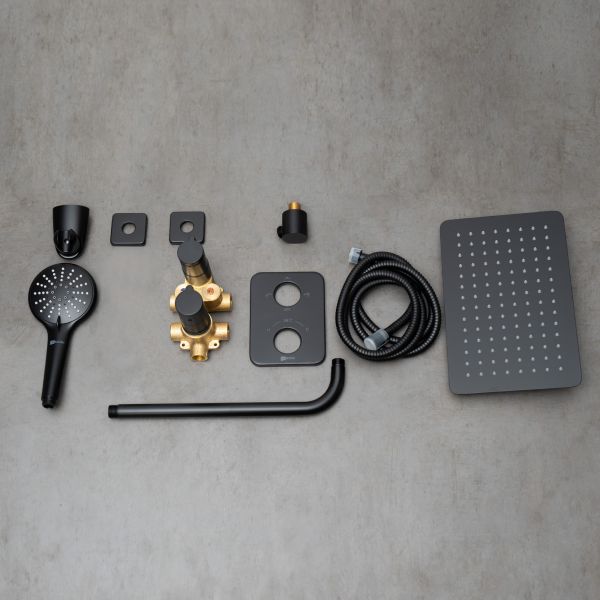 Душевой комплект Lemark Bronx LM3749BL с термостатом чёрный купить