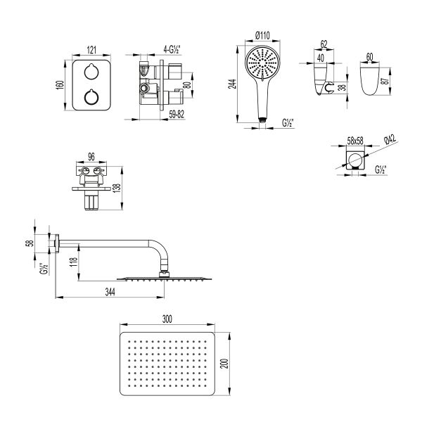 - Верхняя поворотная душевая лейка «Тропический дождь» 200х300 мм