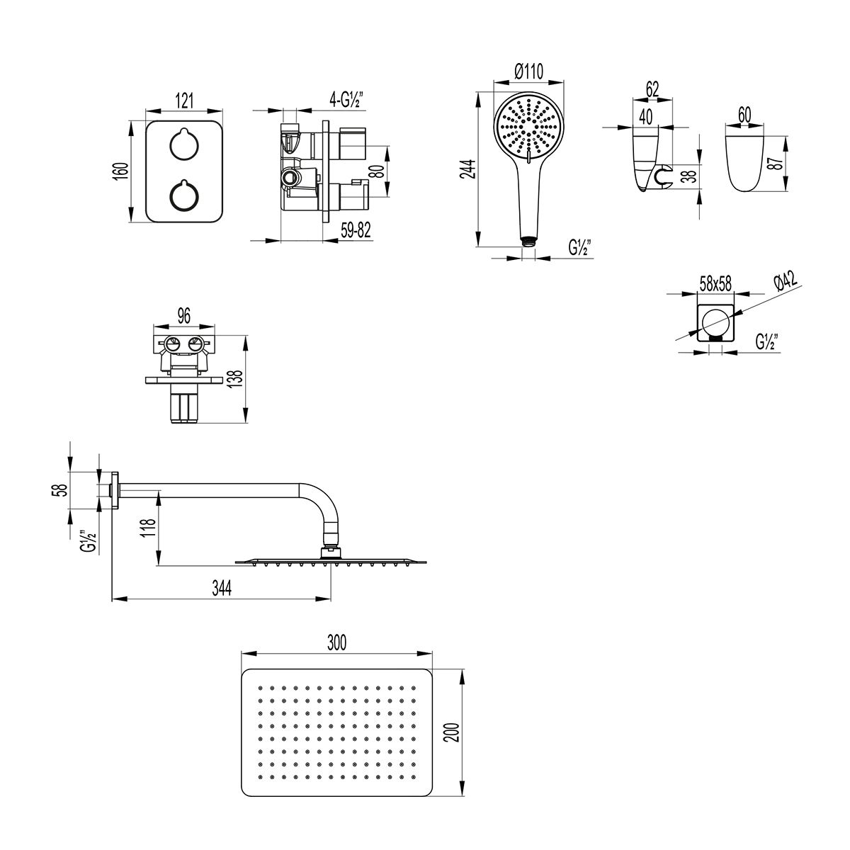 Размер верхнего душа, см:30