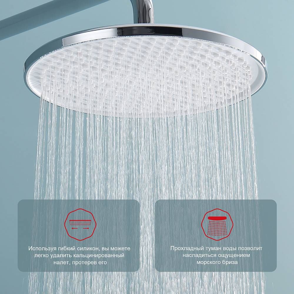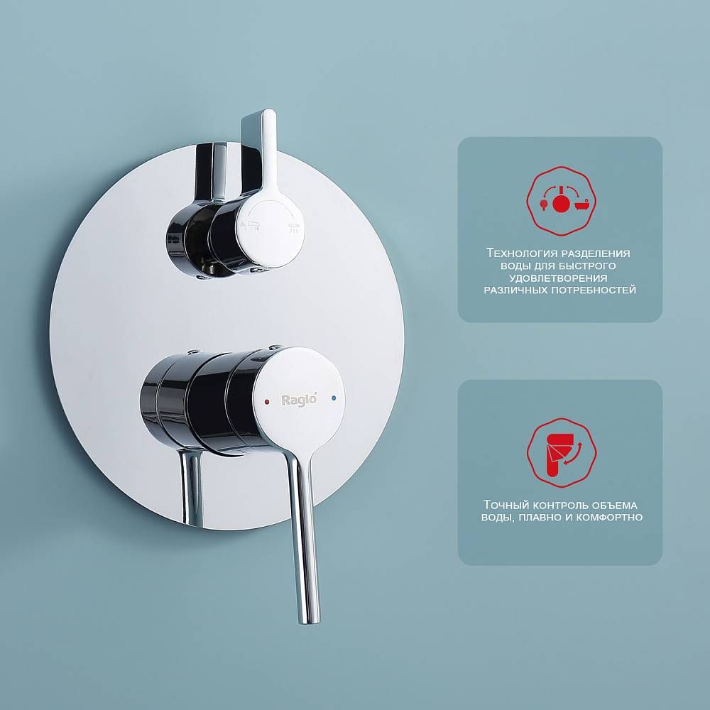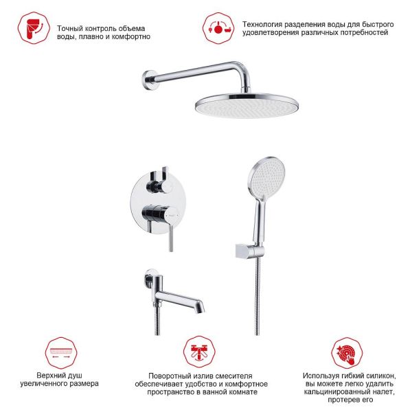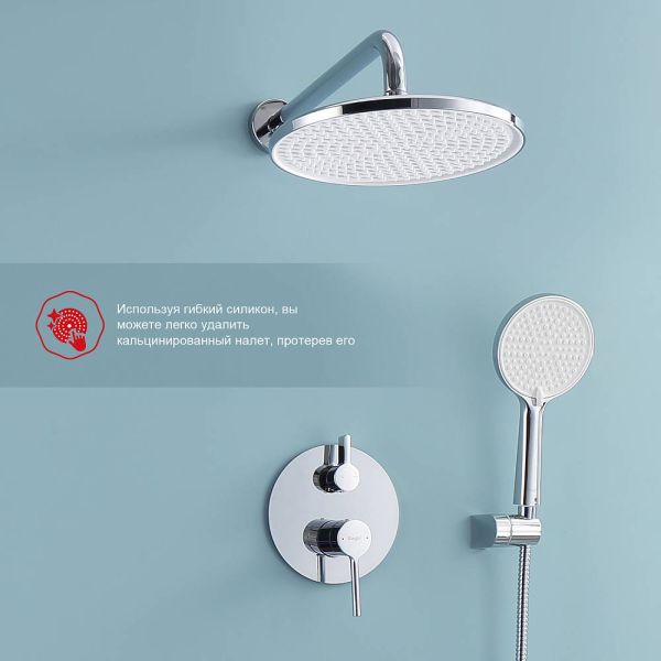 Душевая система встраиваемая Raglo R20.27, хром.Материал: латунь.Управление: однорычажное.Механизм: керамический картридж.Излив: поворотный. Аэратор.Диаметр верхнего душа: 250 мм.Форма верхнего душа и ручного душа: круглая.Количество режимов струи ручного душа: 3.Стандарт подводки: G 1/2.Монтаж: встраиваемый.Излив - функция переключения.
