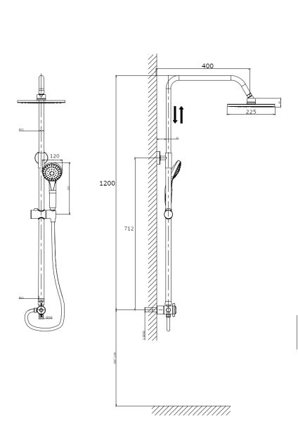 Размер ручного душа, см:12х24