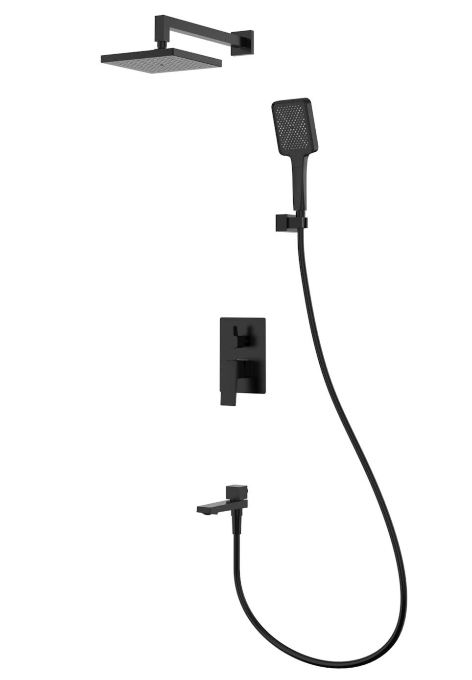 Душевая система встраиваемая Splenka S01.27.06, черный. Материал: латунь. Управление: однорычажное. Механизм: керамический картридж. Излив: поворотный. Аэратор. Стандарт подводки: G 1/2.