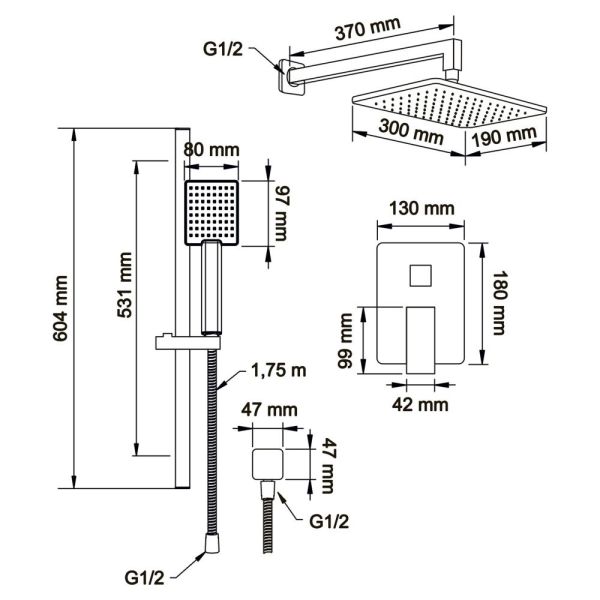 Swedbe Platta 5539 Душевой комплект со встроенным смесителем (с монтажным боксом) и верхним душем.