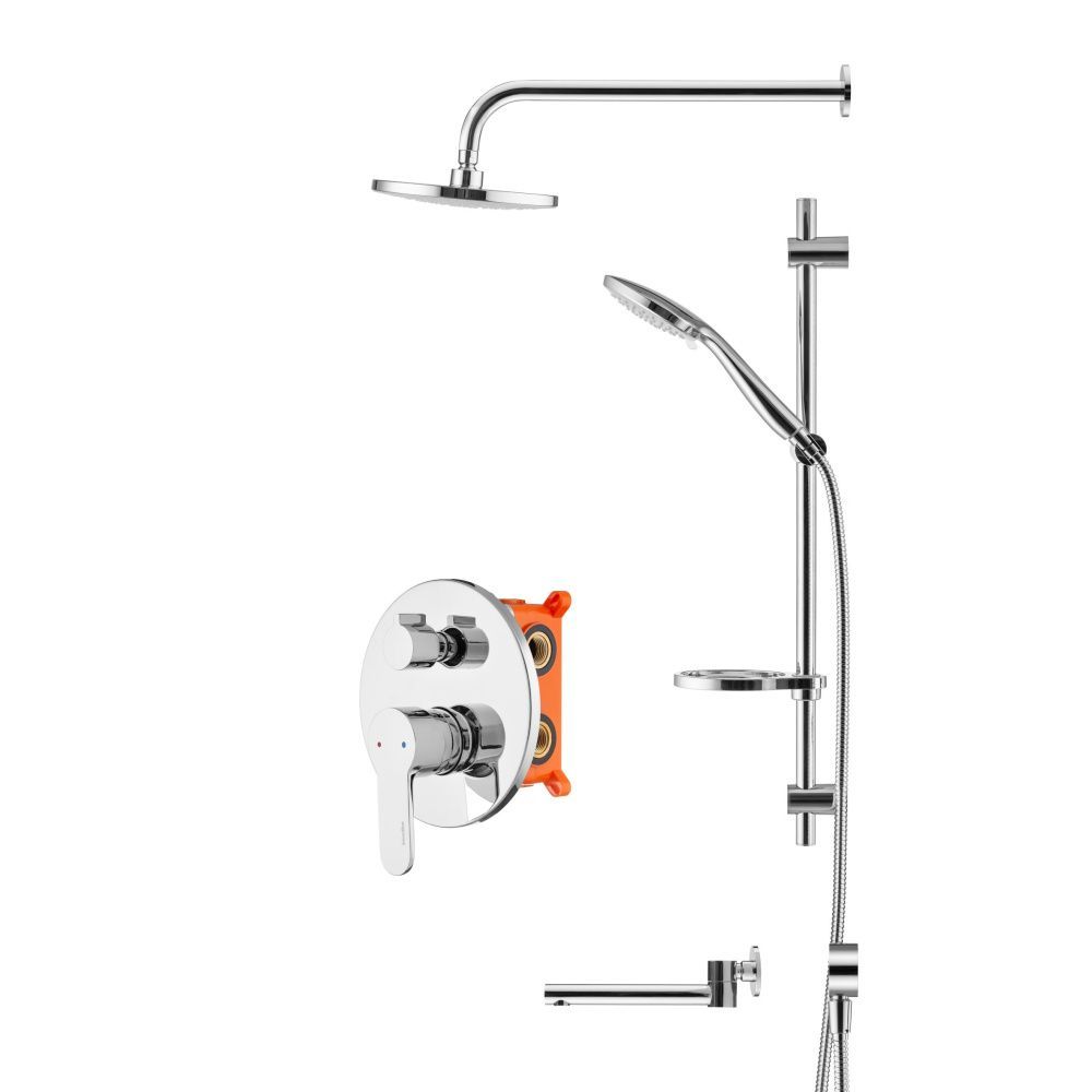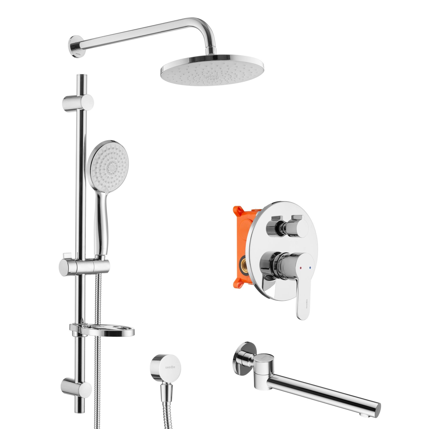 Swedbe Platta 5541 Душевой комплект со встроенным смесителем (с монтажным боксом), верхним душем и поворотным изливом.ПРЕИМУЩЕСТВА: