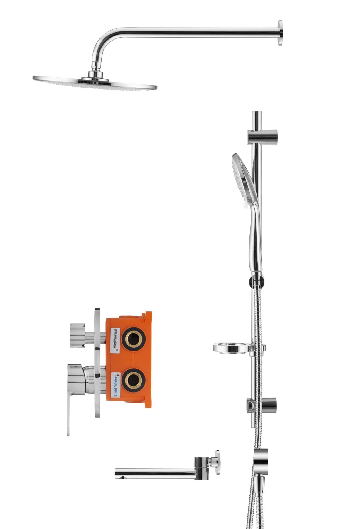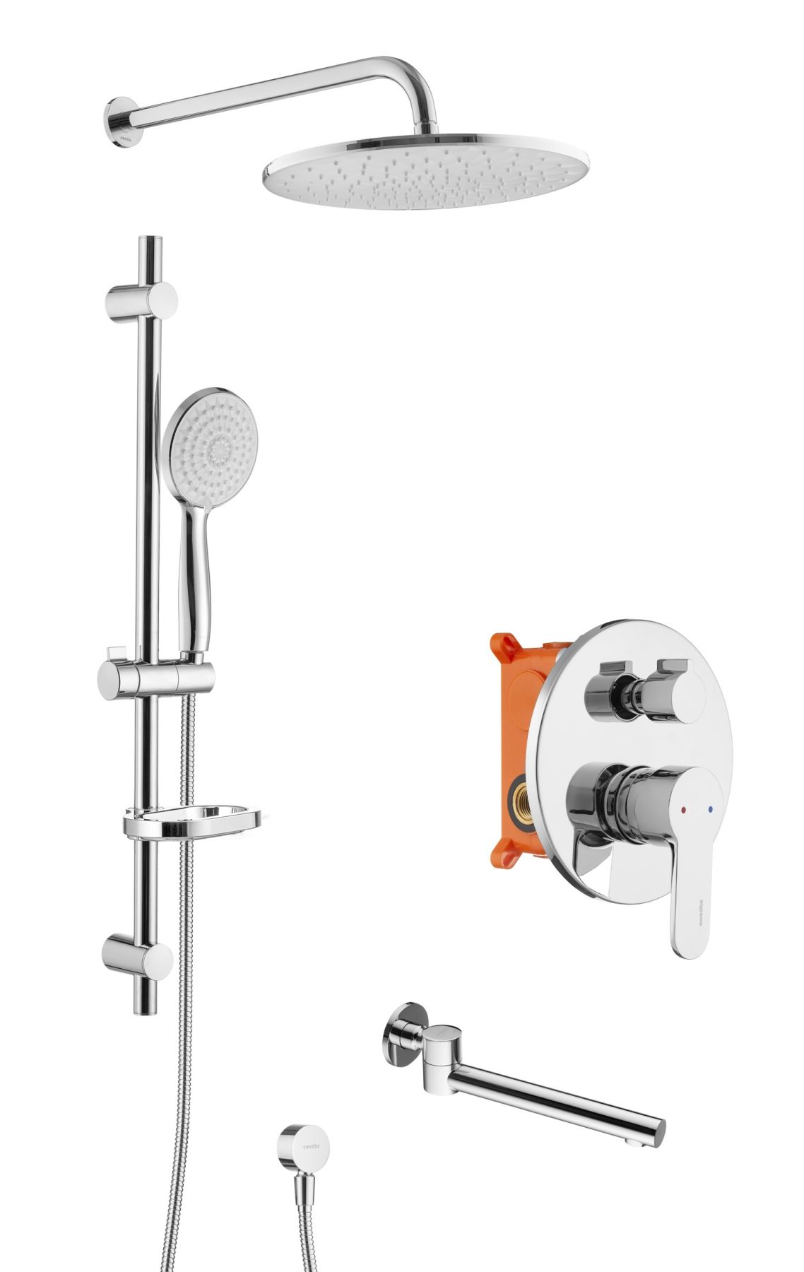 Swedbe Platta 5542 Душевой комплект со встроенным смесителем (с монтажным боксом), верхним душем и поворотным изливом.