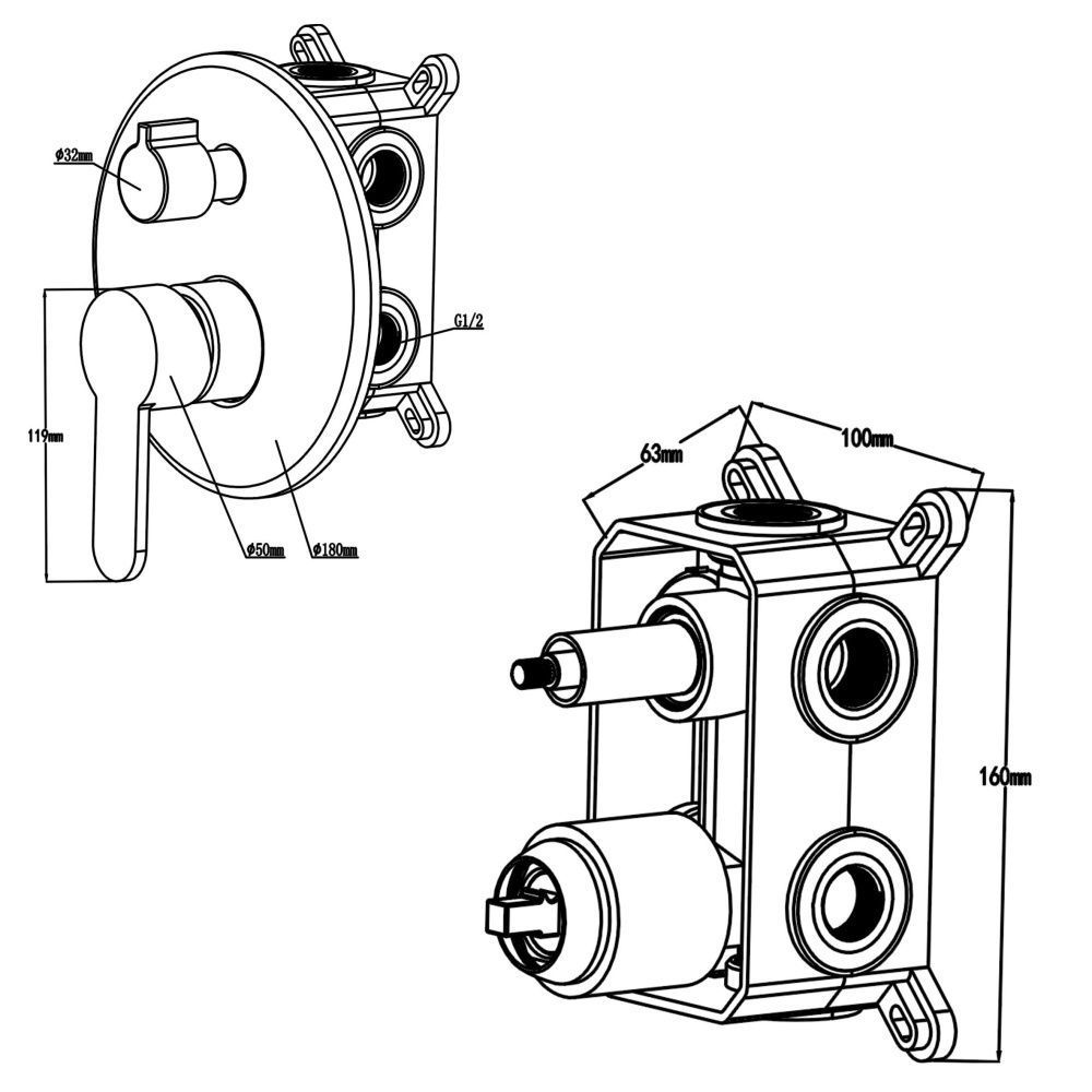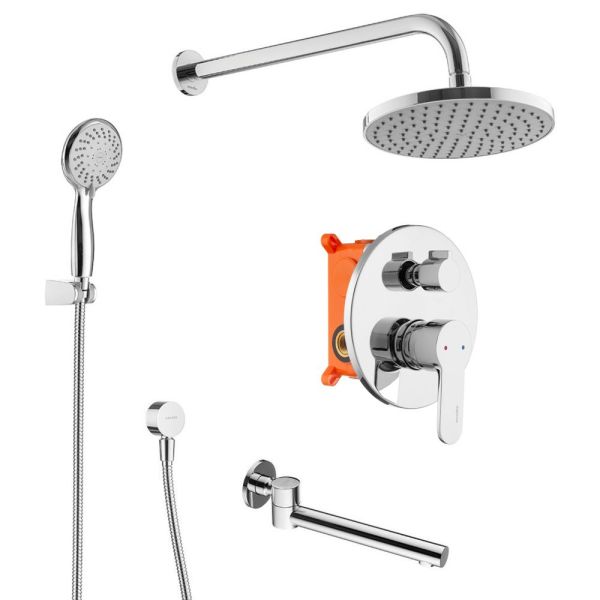 Swedbe Platta 5544 Душевой комплект со встроенным смесителем (с монтажным боксом), верхним душем и поворотным изливом.