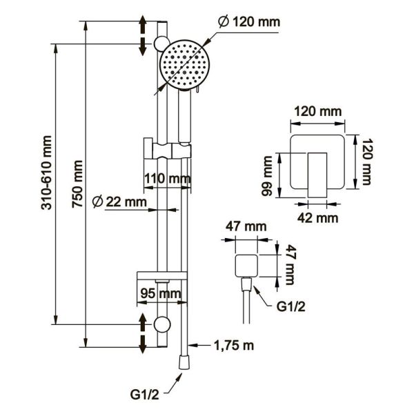 Размер ручного душа, см:12