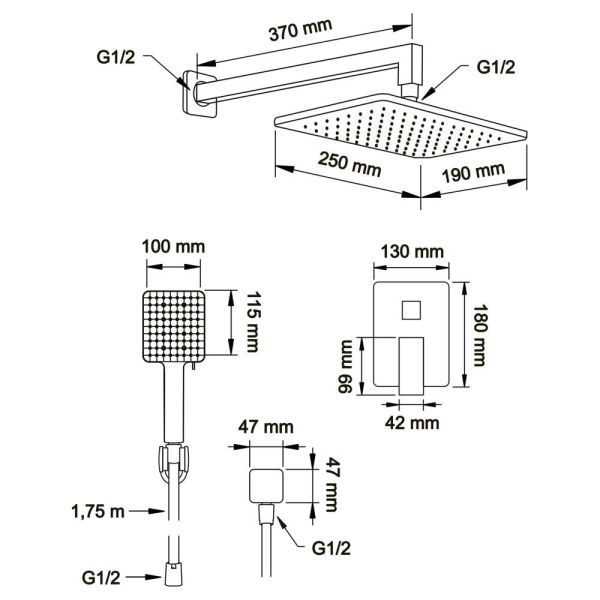 Душевой комплект Swedbe Platta 5555B чёрный купить