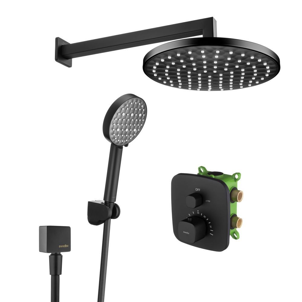 Душевой комплект Swedbe Platta 5564B с термостатом чёрный купить