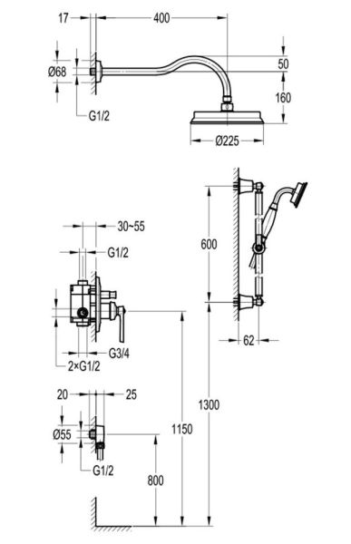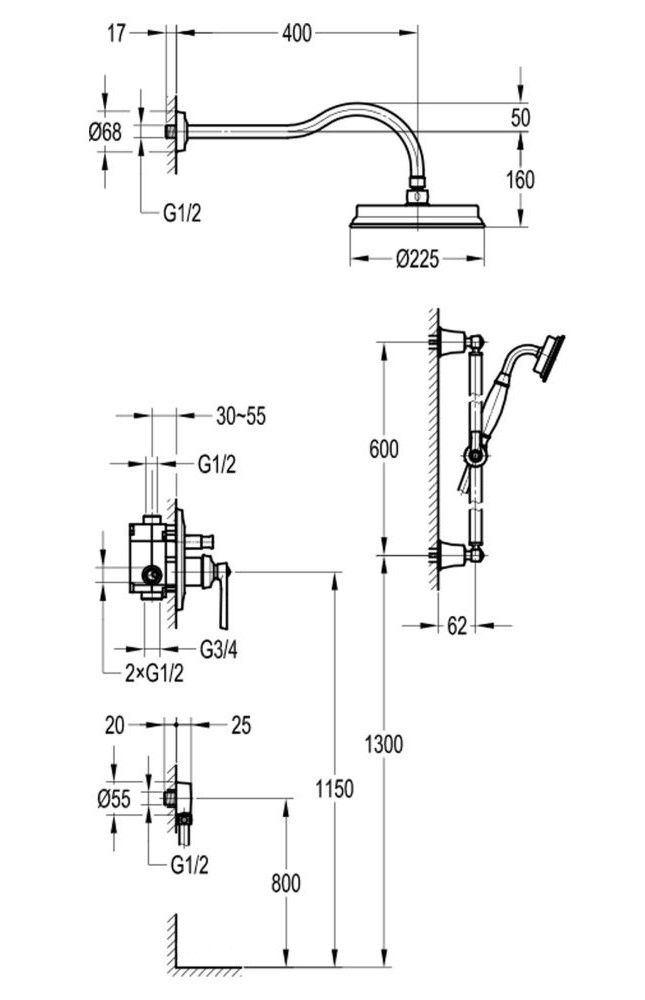 Размер верхнего душа, см:22.5