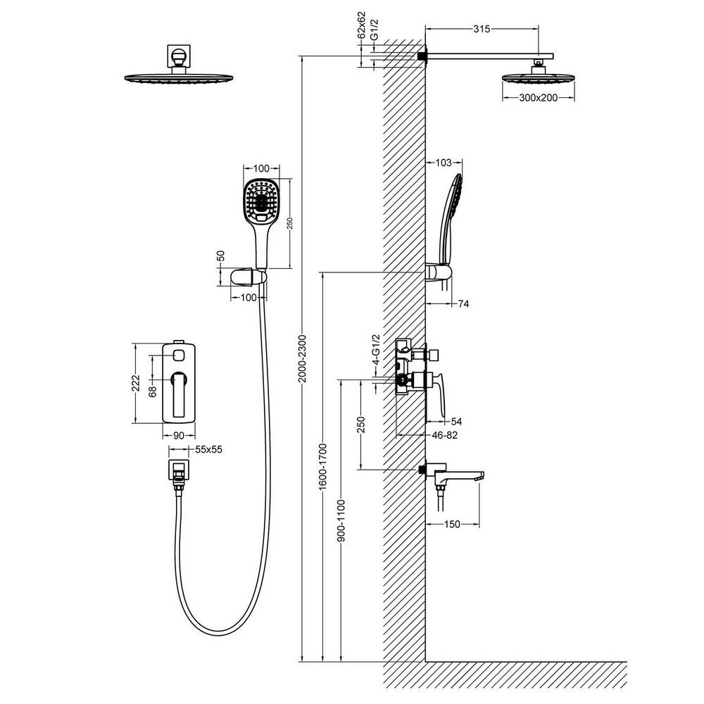 - Смеситель скрытого монтажа - 1 шт.
