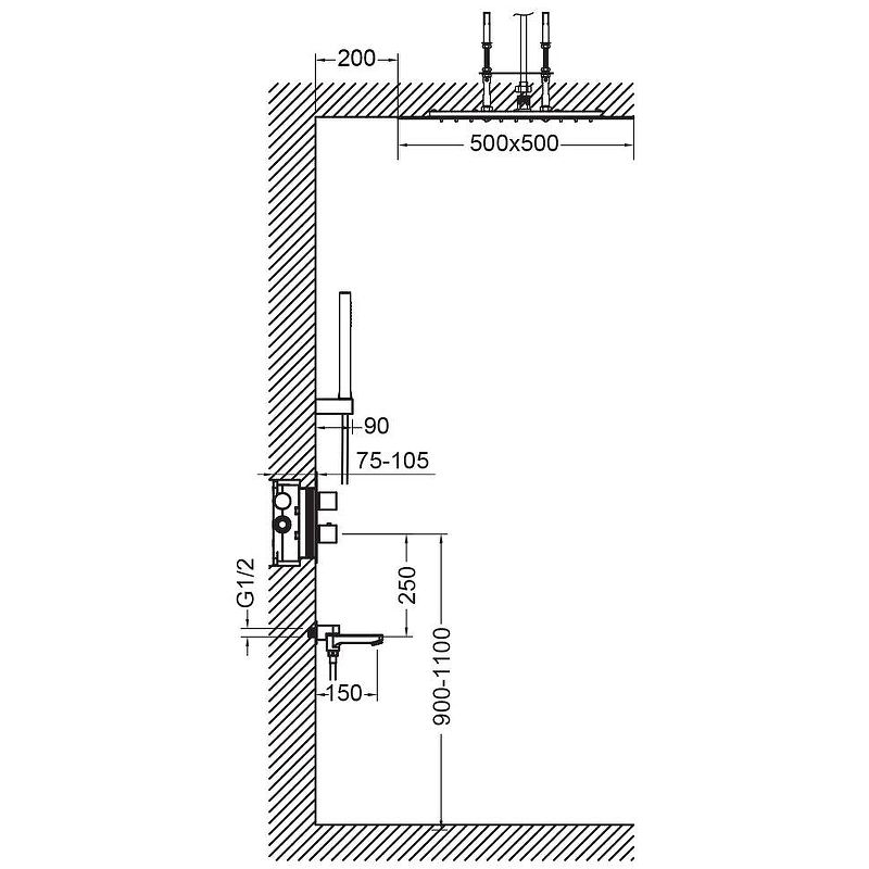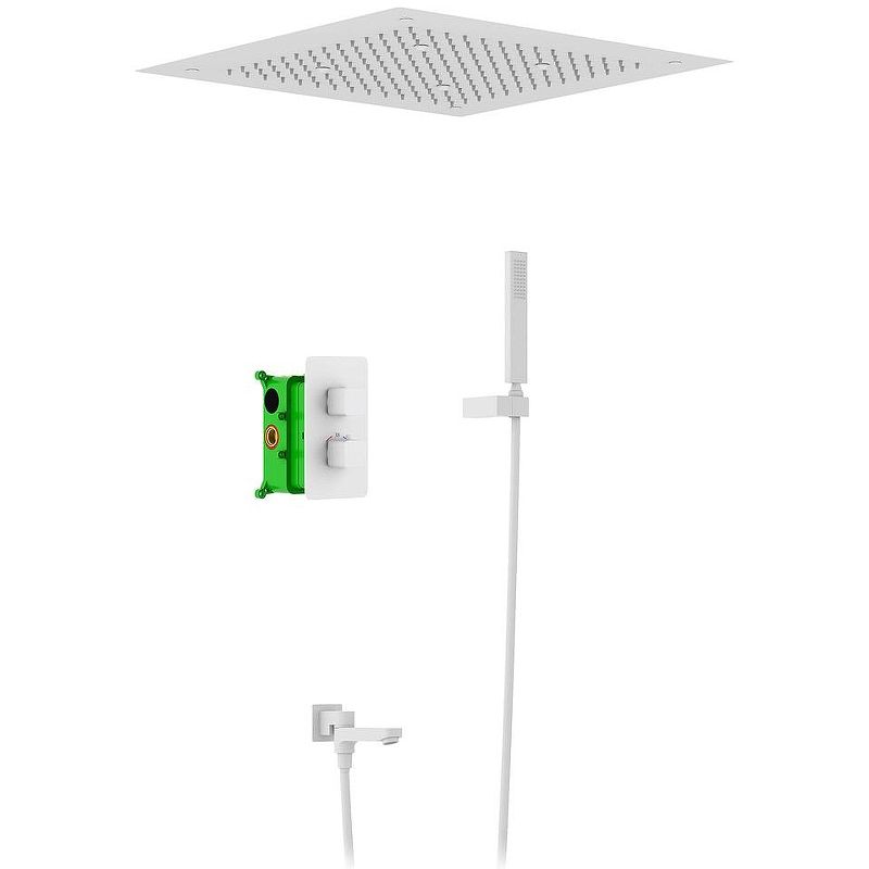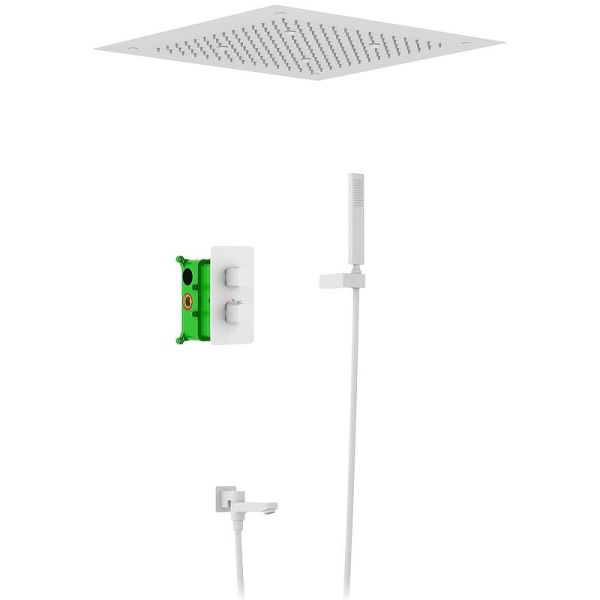 - Душевая система скрытого монтажа, с термостатом с квадратной лейкой (латунь) в стиле модерн