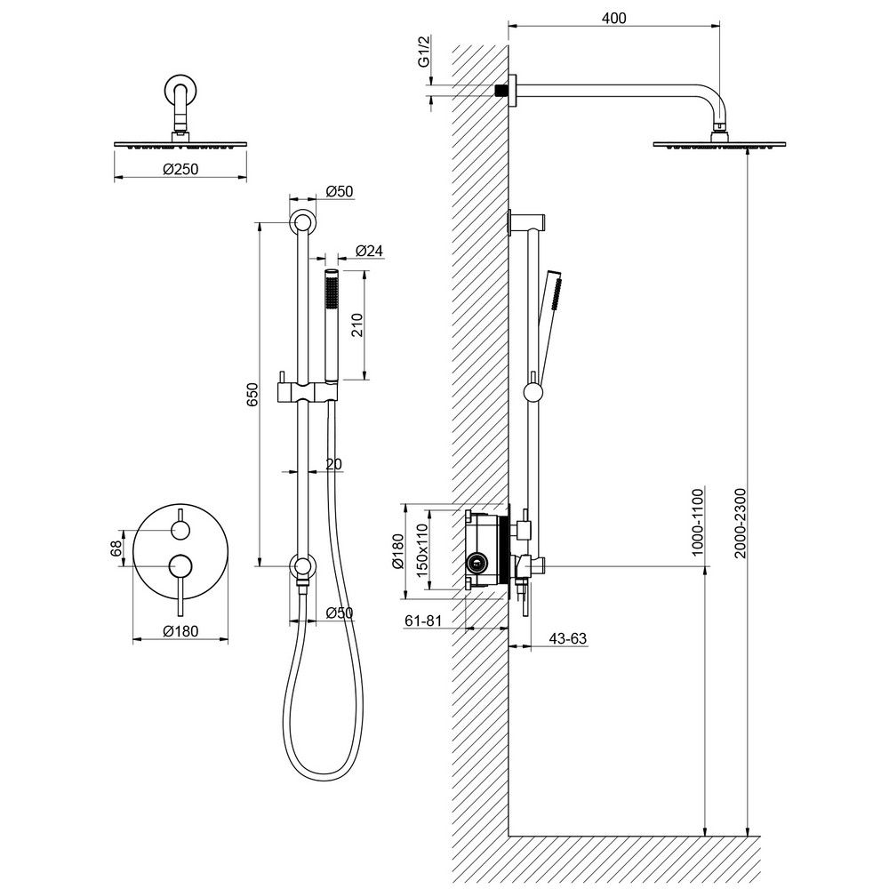 Черная сантехника становится все более популярной для ванных комнат из-за спообности расставлять акценты.Встраиваемая душевая система Saona 2309, предназначена для монтажа в полой или твердой стене. Основные преимущества встроенной системы: коммуникации, крепления и механизмы спрятаны в стену и видны только декоративные элементы. Установить встроенную систему можно в любом месте. Cтильная стойка из латуни позволяет установить ручную лейку-карандаш на необходимую высоту. Использовать такой смеситель очень удобно, регулировка температуры и напора воды осуществляется одним рычагом. Регулируя напор воды в режиме "тропический душ", можно получить массажное воздействие различной интенсивности. Переключение режимов подачи воды (тропический душ, ручная лейка) осуществляется поворотом керамического дивертора. Сложностей монтажа не возникает при установке элементов душевой системы опытным сантехником.Внимательно изучите инструкцию по монтажу и эксплуатации. Черная сантехника требует бережного ухода.
