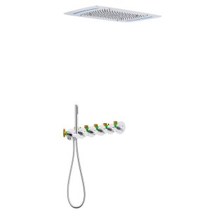 Встраиваемая душевая система с термостатом Timo Saona 2319 относится к премиальному сегменту, предназначена для монтажа в полой или твердой стене. Термостатический картридж поддерживает стабильную температуру воды, обеспечивая максимально комфортные условия для принятия водных процедур. Встроенный потолочный душ большого размера создает имитацию проливного дождя, вода обливает человека целиком. Регулируя напор воды можно получить массажное воздействие, что очень полезно для здоровья. Основные преимущества встроенной системы: элегантный внешний вид, все коммуникации и крепления спрятаны в стену и потолок, снаружи видны только декоративные элементы. Установить встроенную систему можно в любом месте. Сложностей монтажа не возникает при установке элементов душевой системы опытным сантехником. Внимательно изучите инструкцию по монтажу и эксплуатации.