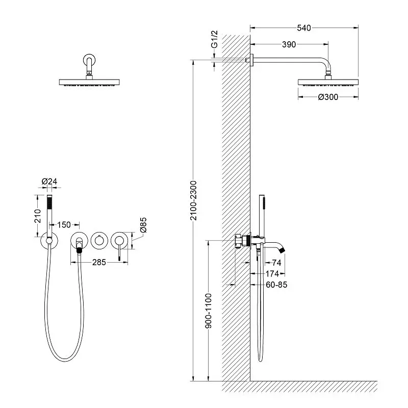 Размер верхнего душа: Ø 300 мм