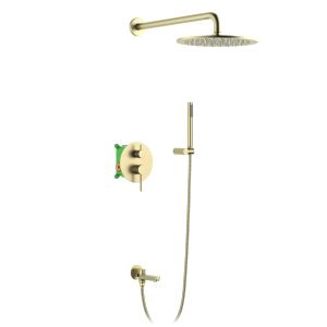 Цвет "матовое золото" никогда не выйдет из моды, во все времена драгоценный металл был признаком богатства.Встраиваемая душевая система Saona 2379, предназначена для монтажа в полой или твердой стене. Основные преимущества встроенной системы: коммуникации, крепления и механизмы спрятаны в стену и видны только декоративные элементы. Установить встроенную систему можно в любом месте. Использовать такой смеситель очень удобно, регулировка температуры и напора воды осуществляется одним рычагом. Регулируя напор воды в режиме "тропический душ", можно получить массажное воздействие различной интенсивности. Переключение режимов подачи воды (тропический душ, ручная лейка) осуществляется поворотом керамического дивертора. Сложностей монтажа не возникает при установке элементов душевой системы опытным сантехником.