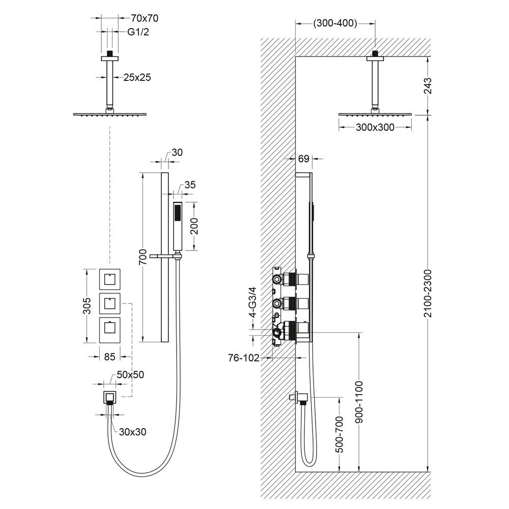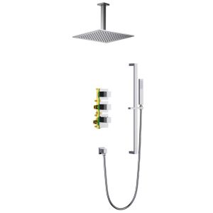 Душевая система с термостатом Selene 2229 относится к премиальному сегменту, предназначена для монтажа в полой или твердой стене. Верхний душ с вертикальным потолочным креплением выполнен из латуни. Термостатический картридж поддерживает стабильную температуру воды, обеспечивая максимально комфортные условия для принятия водных процедур. Регулируя напор воды в режиме "тропический душ" можно получить массажное воздействие различной интенсивности. Основные преимущества встроенной системы: элегантный внешний вид, все коммуникации и крепления спрятаны в стену, снаружи видны только декоративные элементы. Установить встроенную систему можно в любом месте. Использовать такой смеситель очень удобно, стильная стойка из латуни позволяет установить ручную лейку-карандаш на необходимую высоту. Регулировка температуры воды осуществляется ручкой термостата (расположена снизу). Включение режима "тропический душ" и регулировка напора осуществляется поворотом ручки дивертора (расположена сверху) влево. В положении ручки дивертора 12:00 режим "тропический душ" выключен. Для переключения в режим "ручной душ" поверните ручку дивертора (расположена по центру) от 12:00 против часовой стрелки. Увеличение напора воды регулируется поворотом ручки влево. В положении ручки 12:00 режим "ручной душ" выключен. Сложностей монтажа не возникает при установке элементов душевой системы опытным сантехником. Внимательно изучите инструкцию по монтажу и эксплуатации.
