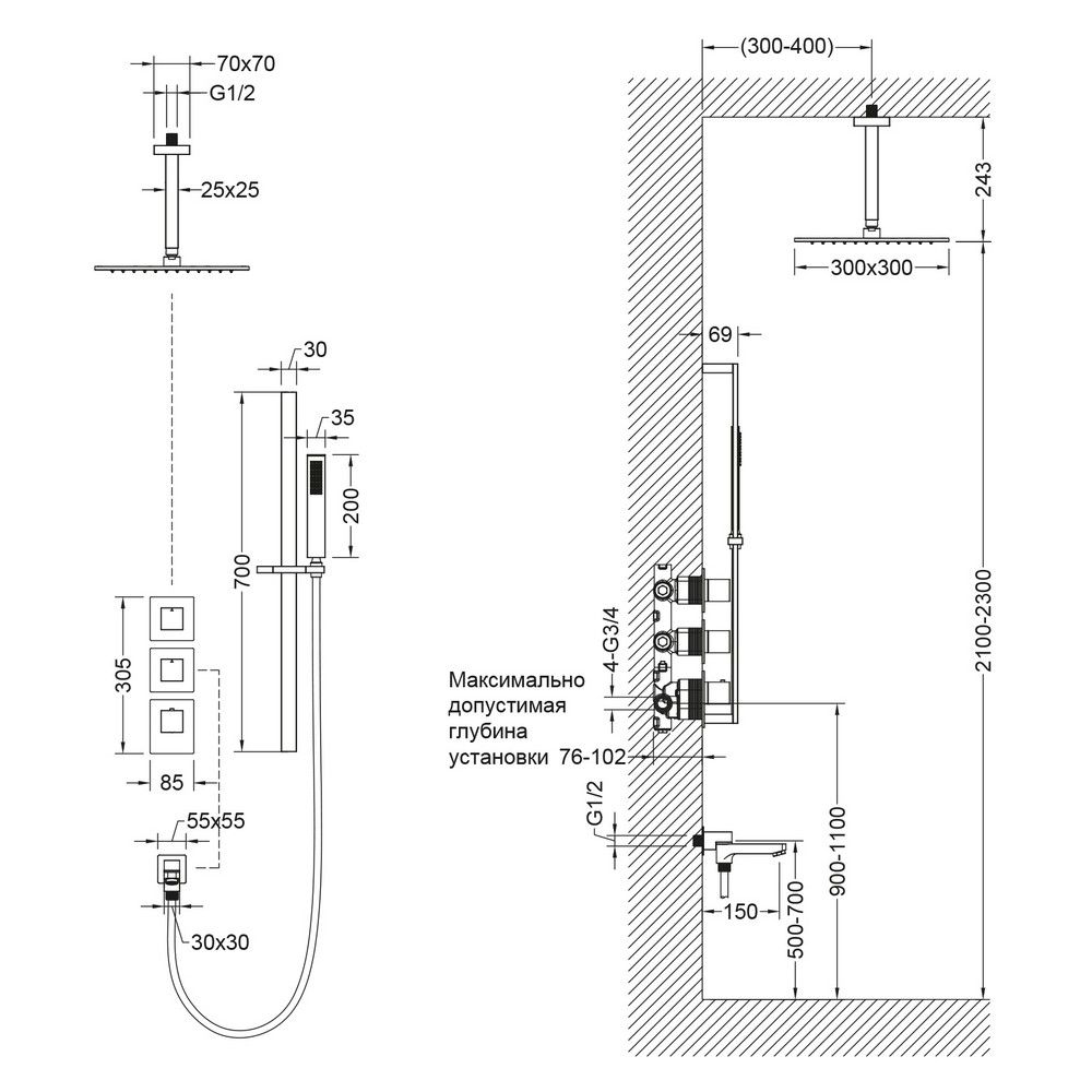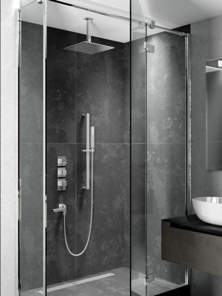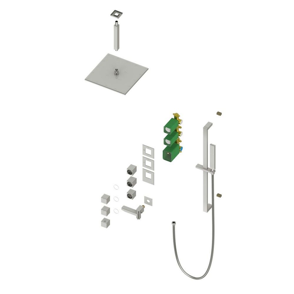 Душевая система с термостатом Selene 2239 относится к премиальному сегменту, предназначена для монтажа в полой или твердой стене. Верхний душ с вертикальным потолочным креплением выполнен из латуни. Термостатический картридж поддерживает стабильную температуру воды, обеспечивая максимально комфортные условия для принятия водных процедур. Регулируя напор воды в режиме "тропический душ" можно получить массажное воздействие различной интенсивности. Основные преимущества встроенной системы: элегантный внешний вид, все коммуникации и крепления спрятаны в стену, снаружи видны только декоративные элементы. Установить встроенную систему можно в любом месте. Использовать такой смеситель очень удобно, стильная стойка из латуни позволяет установить ручную лейку-карандаш на необходимую высоту. Регулировка температуры воды осуществляется ручкой термостата (расположена снизу). Включение режима "тропический душ" и регулировка напора осуществляется поворотом ручки дивертора (расположена сверху) влево. В положении ручки дивертора 12:00 режим "тропический душ" выключен. Для переключения в режим "излив" поверните ручку дивертора (расположена по центру) от 12:00 против часовой стрелки. Увеличение напора воды регулируется поворотом ручки влево. Для переключения потока воды с излива на ручной душ, поверните излив к стене. В положении ручки 12:00 режим "излив" выключен. Сложностей монтажа не возникает при установке элементов душевой системы опытным сантехником. Внимательно изучите инструкцию по монтажу и эксплуатации.