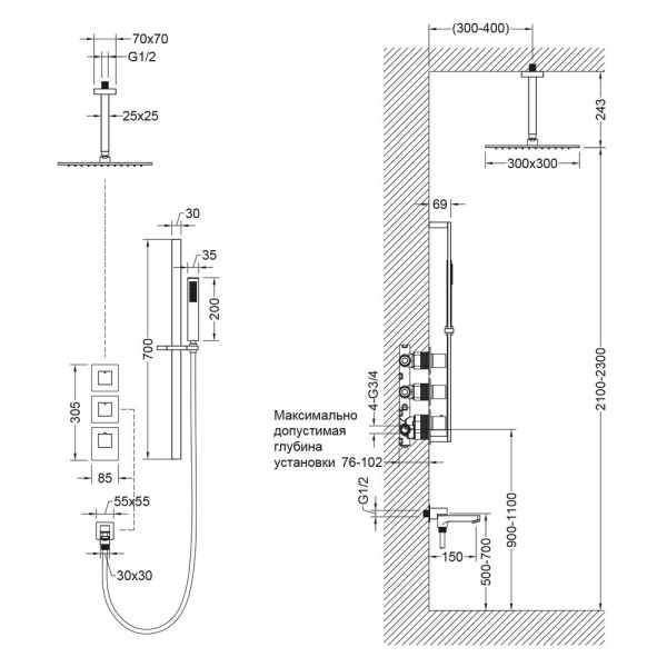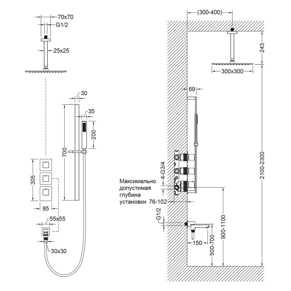- Встраиваемый блок управления душевой системой - 1 шт.