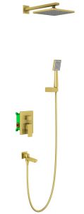 Цвет "матовое золото" никогда не выйдет из моды, во все времена драгоценный металл был признаком богатства.Встраиваемая душевая система Selene 3069, предназначена для монтажа в полой или твердой стене. Основные преимущества встроенной системы: коммуникации, крепления и механизмы спрятаны в стену и видны только декоративные элементы. Установить встроенную систему можно в любом месте. Использовать такой смеситель очень удобно, регулировка температуры и напора воды осуществляется одним рычагом. Регулируя напор воды в режиме "тропический душ", можно получить массажное воздействие различной интенсивности. Переключение режимов подачи воды (тропический душ, излив) осуществляется поворотом керамического дивертора. Для переключения потока воды с излива на ручную лейку нужно повернуть излив к стене. Сложностей монтажа не возникает при установке элементов душевой системы опытным сантехником.