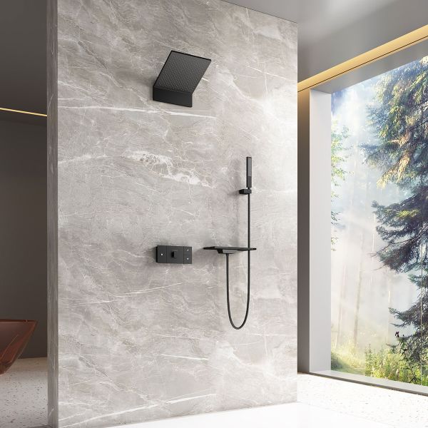 Душевой комплект Vincea Futura VSFW-2F11TMB термостатический встраиваемый, трехрежимный, черный купить