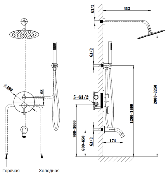 Размер верхнего душа, см:25